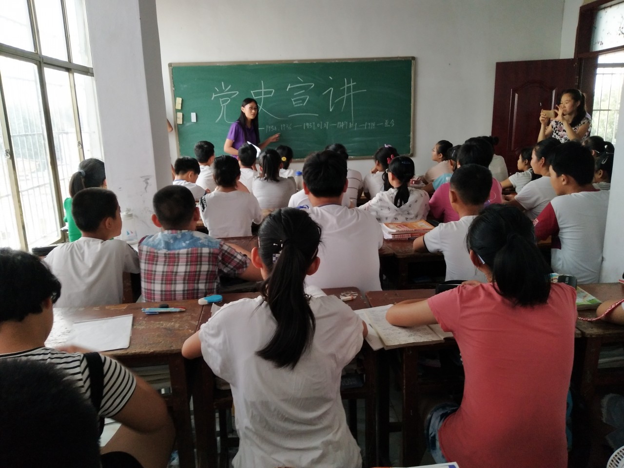 2017年7月26日上午,由山东科技大学泰安校区机电工程系团总支郅红珍老师带领的“党建入基层”社会实践团队在泰安高新区天宝镇举办青少年党史知识宣讲会。