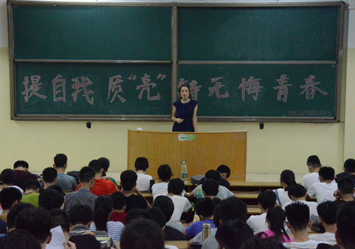 7月19日下午,系团总支郅红珍在5#206召开“提自我质‘亮’,铸无悔青春”期末主题班会,自动化15-1,智能控制15-1,机制(本科)15-1、15-2,机制(高本)15-1全体同学参加会议。