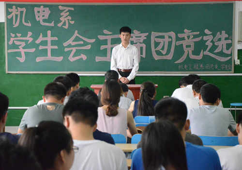 7月6日上午,机电系第十二届学生会主席团竞选大会在2#403举行,系党总支副书记殷永贵、系团总支书记谢清勇及系全体辅导员担任评委,第十一届学生会主席团及部长代表参加。