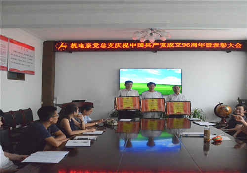 6月30日,机电工程系在系会议室举行庆祝中国共产党成立96周年暨表彰大会。系全体教工党员参加大会。大会由系党总支副书记殷永贵主持。