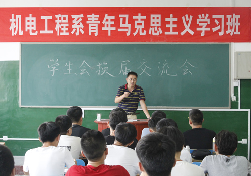 6月27日,机电系在2号楼403召开学生会主席团换届竞聘交流会。系团总支周立志老师及拟竞聘新一届学生会主席团的同学参加会议。
