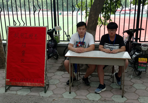6月21日,机电系学生会在2号和3号宿舍楼前设立服务处,为即将搬离宿舍的毕业生们提供服务帮助。