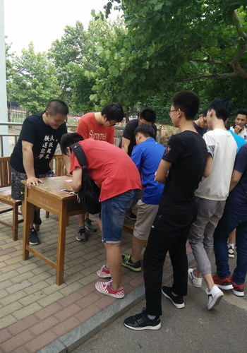 6月16日,机电系宿建第一党小组在小篮球场东侧林荫道处开展“弘扬雷锋精神”服务日主题活动。