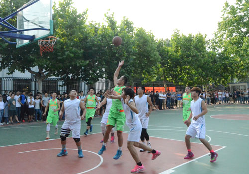 五系篮球赛机电系对阵经管系的比赛在东校园篮球场进行