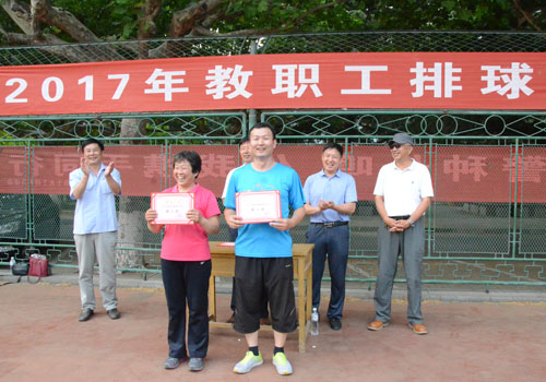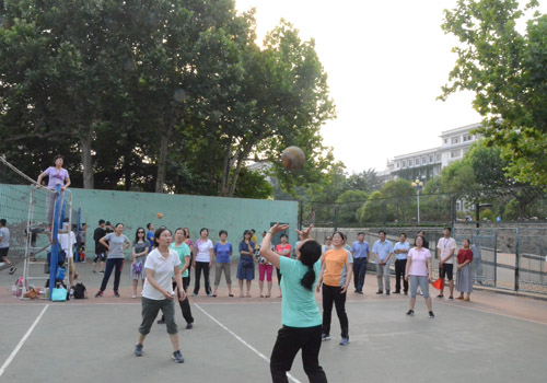 6月2日,校区教职工排球赛决赛在东校园排球场进行。机电系代表队与基础课部代表队展开冠亚军的争夺赛。
