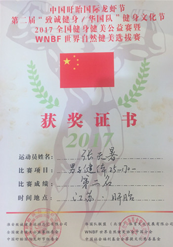 6月1日-3日,2017全国健身健美公益赛暨WNBF世界自然健美选拔赛在江苏省盱眙县大剧院举行,机电工程系机制(专本)16-1班学生张天暑获青年健体A组比赛亚军。