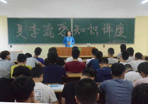 任伟丽为同学们讲解了流感的常见类型,并向同学们普及了一些预防流感的知识。她指出,同学们预防流感应提高自身抵抗力,多运动,多吃水果蔬菜,保证正常的营养摄入,同时宿舍、教室等人员密集场所要每天开窗通风,做好清洁工作。