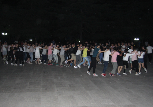 5月12日晚,机电系文艺部在文化广场组织广场舞“尬舞”活动,系百余名学生参加。