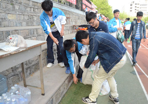 比赛交给运动员,操场清洁交给我们这些“蓝精灵”