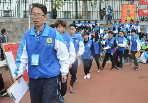 校园部成员身穿代表机电系学生会的蓝色马甲,定时前往观众区检查卫生,指出各观众区卫生落实不到位的地方,并对观众区卫生进行评比。