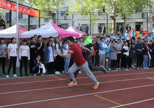 4月20日下午,机电系学生会、资土系学生会、校区自律会及校区学生会四大学生组织进行了4×100米接力比赛。机电系学生会主席团参加了比赛。