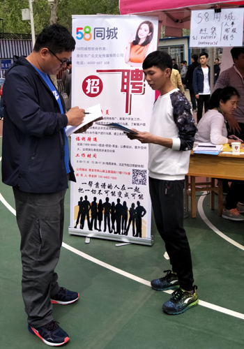 4月15日上午,校区2017年春季毕业生供需见面会在东校体育场举行。