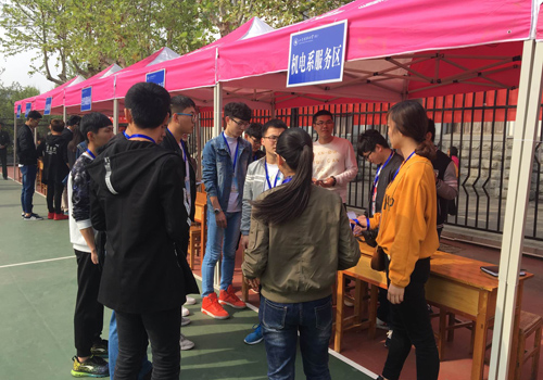 机电系新闻中心到达招聘会现场后,根据现场具体情况,结合既定计划再次调整分工任务。