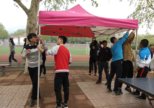 摆满整个篮球场的遮阳篷是同学们齐心协力、坚持不懈的体现,排列整齐则是他们对标准的严格遵守。
