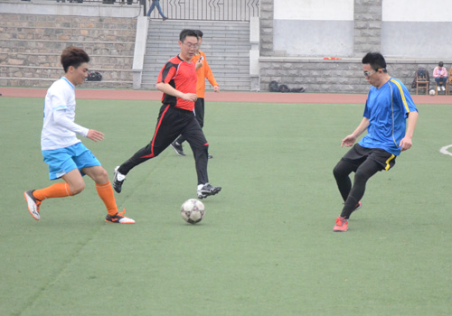 4月7日下午,机电系在东校体育场参加东西校师生足球友谊赛。