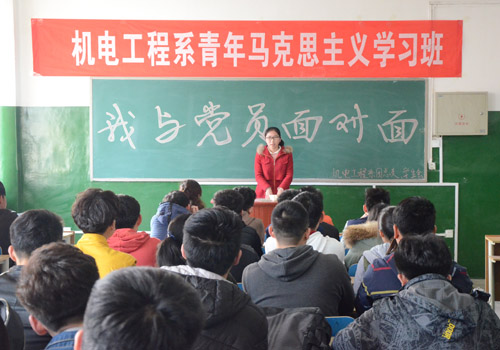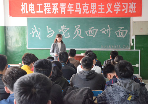 3月31日下午,机电系青年马克思主义学习班在2#403召开“我与党员面对面”交流会。青年马克思主义学习班全体成员参加会议。会议由政宣党小组组长薛雨晴主持。