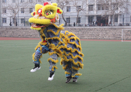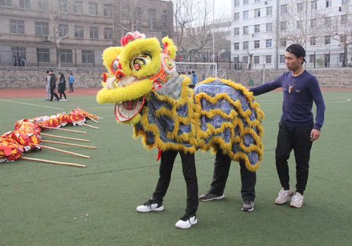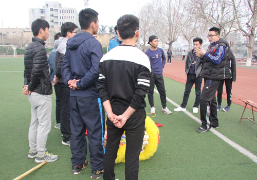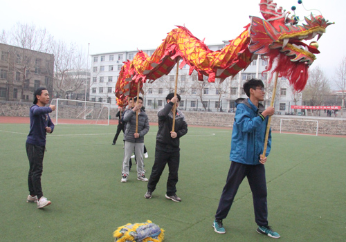 近日,机电系组织在体育场进行舞龙舞狮训练,