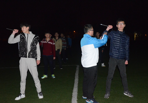 随着运动会的临近,近日,机电系双截棍协会组织成员分别在体育场、文化广场进行双截棍训练,共有64人参加双截棍训练,每天下午课余时间及晚上八点后准时集合训练。