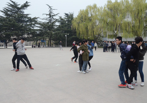 各参赛队伍中的一位同学吹气球,另两位同学背靠背挤着气球向终点冲刺,到达终点后将气球挤破。各队前往终点的方式不尽相同,有的小组采用螃蟹行走的方式,有的小组采用一人在前一人在后的方式。最终,由机制(科专)16-2班王超带领的队伍获得比赛冠军。(文:申建正 周雪 图:葛丽媛)