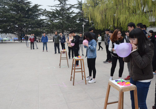 3月23日,机电系女工部在文化广场举办“球球大作战”趣味比赛。