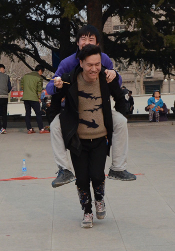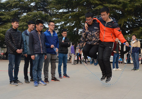 3月18日下午,机电系参加第一届大学生全民运动会。运动会分双人乒乓球接力、双人背部顶球、踢毽子进圈、双人跳绳四个项目,机电系学生会共十四支队伍参赛。