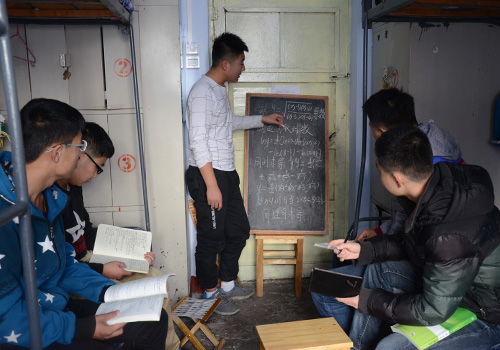 走进新生宿舍,撑起的小黑板,“学霸”在答疑解惑,大家为期末共同努力。