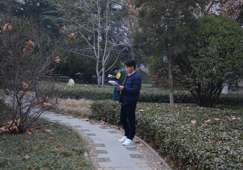 公园早读,寒冷的风削减不了对学习的热情。
