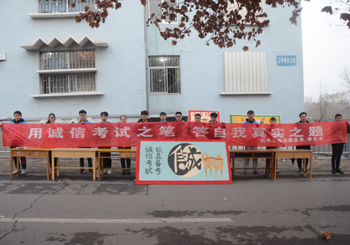 小篮球场东侧,为诚信应考签名,秣马厉兵,备战期末。