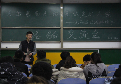 研究生入学考试刚刚结束,12月26日,机电系特邀请在读研究生我系第九届学生会主席李量、副主席刘南南,在2号楼401召开“走出考场、走向复试、走过大学”考研经验交流会。