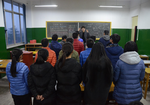 “你可知Macau不是我真姓,我离开你太久了,母亲……”同学们对照黑板上的歌词,逐句学习后进行合唱,并在合唱结束后在黑板上签字,为自己投身于祖国繁荣富强建设的决心宣誓。