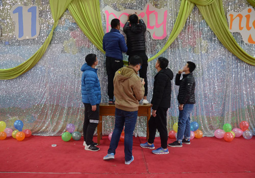 12月17日,机电系学生会内部联谊准备工作筹备中,部长干事齐上阵,其乐融融一家亲。