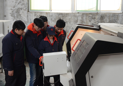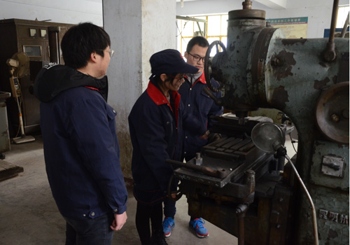 “我教你,应该按这里。”男生们耐心的教班里唯一的女生如何使用数控机床