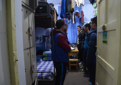 11月28日,大学生宿舍建设委员会早检部对机电系宿舍进行查晚起工作。