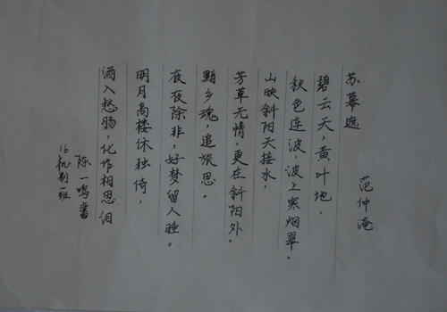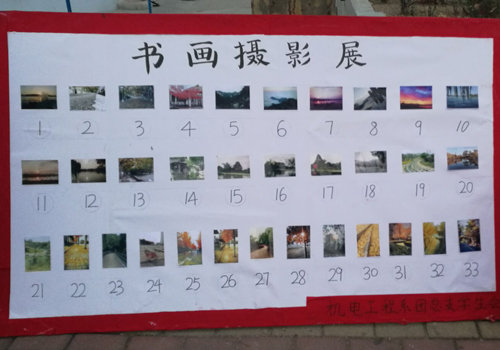 11月25日,机电系摄影书画展评选结果揭晓。电自动化(高本)16-1刘俊凯、电气自动化(科专)16-2齐璐获摄影作品一等奖,机制(科专)16-1陈一鸣的《苏幕遮》、智能控制(本科)16-1杨明辉的《神域》分别获书法和绘画作品一等奖。