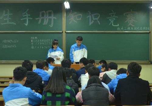 10月31日,机电系在5号楼六个教室举办学生手册知识竞赛初赛,机电系学生会各部门部长参加并担任评委。