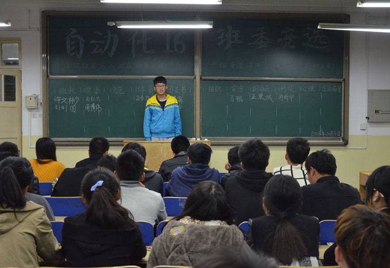 竞选前,2016级新生详细了解了班级班委会及团支部委员会的职位设置情况及工作职责。竞选过程中,参加竞选的同学在黑板上拟竞选职位下面郑重写上自己的名字,并就对职位的认识、任职经历、下一步工作打算等展开竞选演讲。竞选过程中同学们积极踊跃,热情参与,很多班级参加竞选的人数超过班级人数的3/4。记者在采访中注意到,与往年相比,今年参加竞选的同学几乎都全程脱稿,同学们在演讲中自信沉稳、思路清晰、表达流畅,展现出了良好的精神面貌和素质。