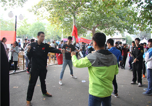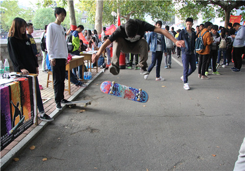 近日,机电系学生社团在小篮球场边组织纳新活动。为便于新生报名,各社团在道路两旁设立宣传摊位,并通过展板、宣传单、真人表演等方式对本社团进行介绍展示。为吸引新生的加入,机电系21个社团纷纷使出自己的看家本领。机器人协会展示了小巧的机器人,吸引了许多新生驻足观看;清风棋社摆开棋盘,在现场与提交报名表的新生切磋棋艺;岳铃空竹社凭借优美的吉他声和精彩的空竹表演,博得很多新生的关注……各个社团在进行宣传的同时也积极与新生进行交流,热情回答新生们提出的各种问题。(文:周雪 图:赵文港)