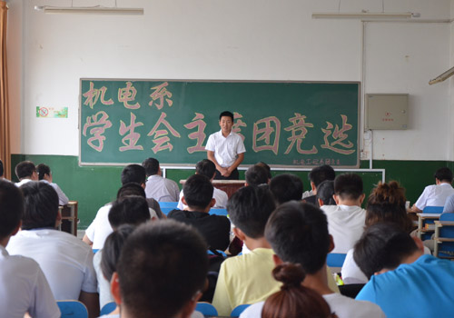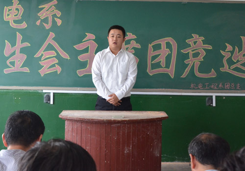 7月6日,机电系第11届学生会主席团竞选大会在2号楼403教室进行。机电系党总支副书记殷永贵及系辅导员出席大会并担任评委。