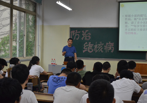 6月23日,机电系在5#205举办结核病防治知识讲座。校医院原院长门德良应邀主讲。