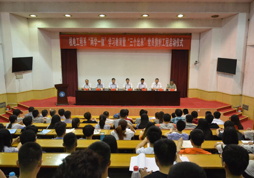 张建中宣读了《机电工程系“两学一做”学习教育暨“三个出来”党员旗帜工程实施方案》,并就实施“三个出来”党员旗帜工程作了部署。张建中指出,为深入开展“两学一做”学习教育,机电工程系党总支决定实施“日常生活看出来,干事创业显出来,关键时候站出来”(即“三个出来”)党员旗帜工程。开展教师党员“四有好老师”争创活动,并决定成立9个学生党员特色党小组、学生党员模范队、青年马克思主义理论学习班。