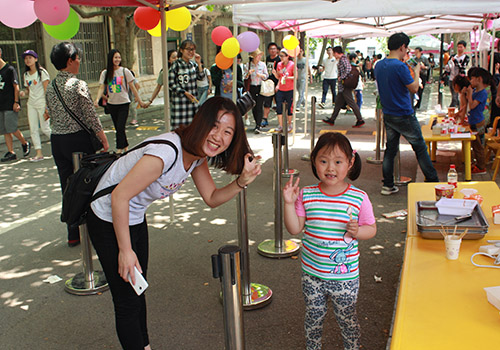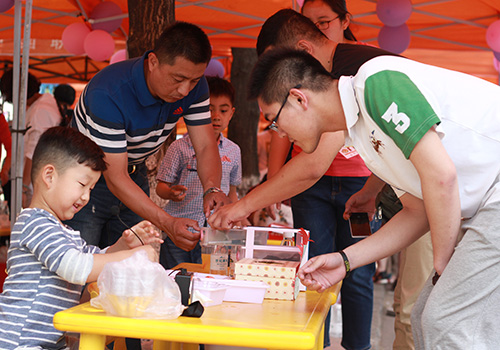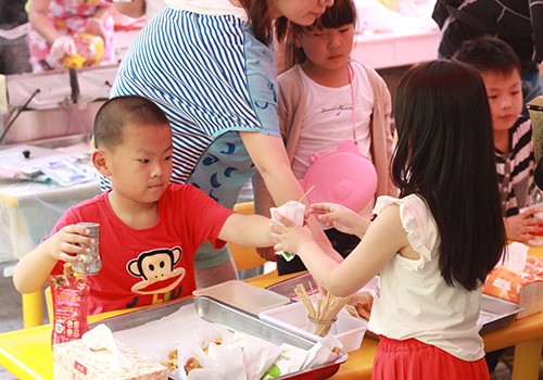 6月1日,山东科技大学幼儿园孩子们在东校园举办“美食节”活动,机电学子见状也童心爆发,参与其中。