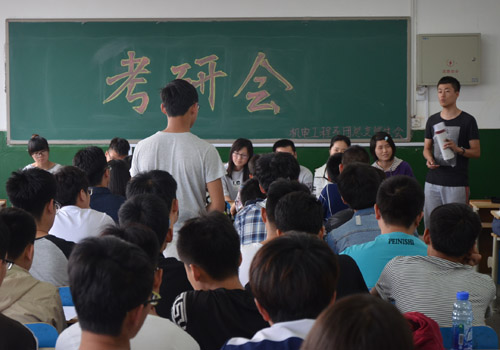 5月10日下午,机电系在2#403召开考研交流会。第九届学生会主席、考研宣讲团团长李量出席此次会议,八位优秀的研究生对同学们进行了指导,本次考研交流会由学习部主持。