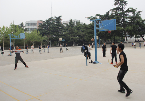 4月20日,机电系在小篮球场举行羽毛球比赛。