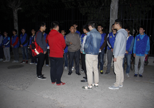 晚上九点半,宿建会成员在负责人组织下整齐列队前往各宿舍楼进行突击检查,此次突击检查强调快、静、严三字。检查人员礼貌敲门示意,对各宿舍认真检查并详细记录检查结果。王衍国也亲自参与此次突击检查,并对检察人员提出了“宿舍检查要严格仔细”、“检查结果的反馈与落实必须及时”两点要求。检查完毕,宿建会成员在负责人的带领下有秩序返回,并将检查结果整理上报。