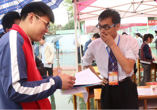 4月16日,校区组织2016年春季毕业生就业供需见面会。系辅导员周立志带领的14级自动化、机制等专业10个班级的学生参与其中。