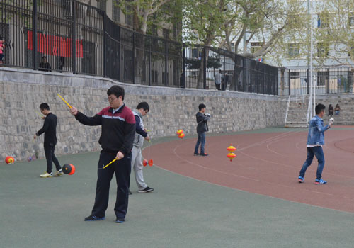 独特的加油助威方式可不能出现分毫的差错,空竹队的成员们一有时间就组织训练,期待他们在开幕式上的表现了。