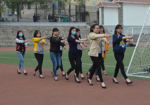 近日,为迎接即将到来的2016年春季运动会,机电系各方阵代表队在体育场积极进行训练。