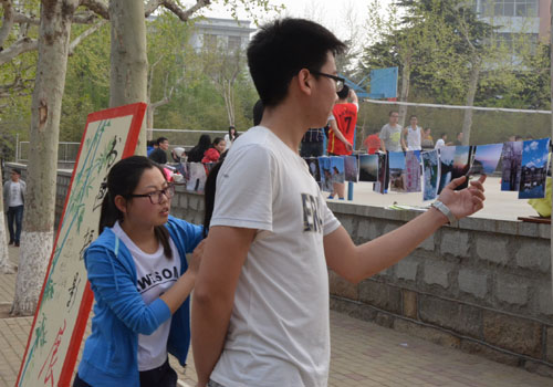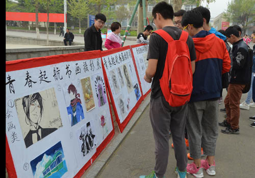 于小篮球场东侧举办“青春启航”书画摄影展。