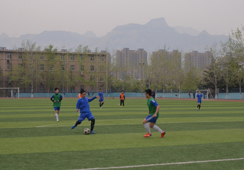 4月6日,五系足球联赛之机电系对战文法系足球赛在西校区体育场展开。系团总支书记谢清勇到赛场进行指导。