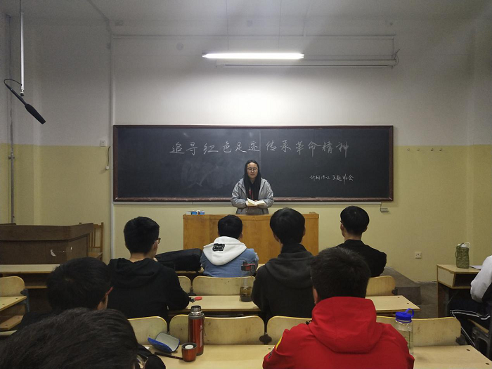 为进一步弘扬革命传统和爱国主义精神,以提升团员的思想境界,充分发挥团员的先锋模范作用,4月2日,信息系计科18-2班举办“追寻红色足迹 传承革命精神”为主题的班会在教学楼3204顺利举行。此次以“红色精神”主题班会由计科18-2班团支书沈兆旋主讲,计科18-2班全体学生参加。